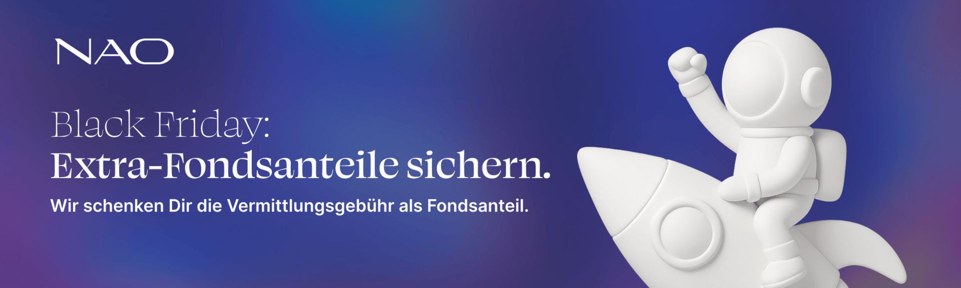 Worum geht’s: Zum Black Friday hat NAO eine Sonderaktion für alle Cruncher. Investierst Du in einen Fonds Deiner Wahl, erhältst Du die Vermittlungsgebühr als zusätzliche Fondsanteile on top.