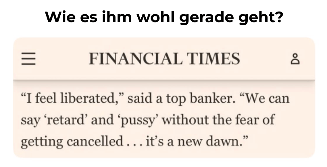 “Bro, holy fuck.” So kommentierte der US-Streaming-Star Adin Ross gestern den Wertverlust seiner Aktien- und Kryptodepots. Und damit war er nicht allein. Zahlreiche sog. “Brocaster” – also männliche, Trump-zugewandte Podcaster – beschwerten sich gestern immer schärfer über Trumps Zoll-Politik, weil ihre Portfolios abgerutscht waren.