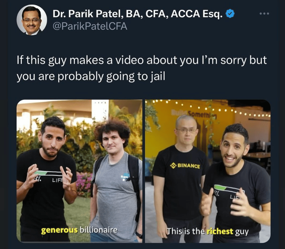 im Knast gibt es eine kleine Krypto-Reunion: nach der Verurteilung von Sam Bankman-Fried (SBF), Gründer der Krypto(scam)plattform FTX, muss nun auch Changpeng Zhao, Gründer der Kryptobörse Binance, wegen Geldwäsche ins Gefängnis - allerdings nur für 4 Monate…